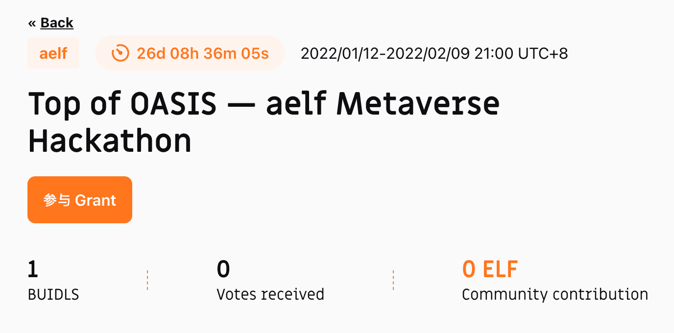 1. 打开黑客松活动页面 https://hackerlink.io/zh/grant/aelf/,点击“参与Grant”(新用户请先注册哦)。